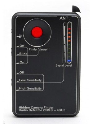 When you need to find a hidden camera this KJB DD3150 detection device can find it two ways, 1- using the powerful set of red LED’S and view finder to locate the lens of any camera 2- using RF detector to pick up transmission of radio frequency.